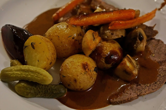 Grannarna bjöd på älgkalvfilé och rådjurslår med ungsrostad potatis, pepparsås och grönsaker till huvudrätt. Det var såå gott så jag tog dubbla portioner :)